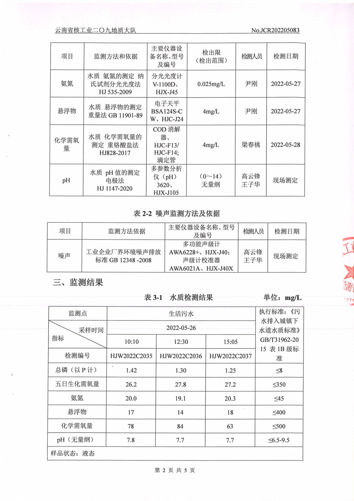水質、噪聲監(jiān)測報告